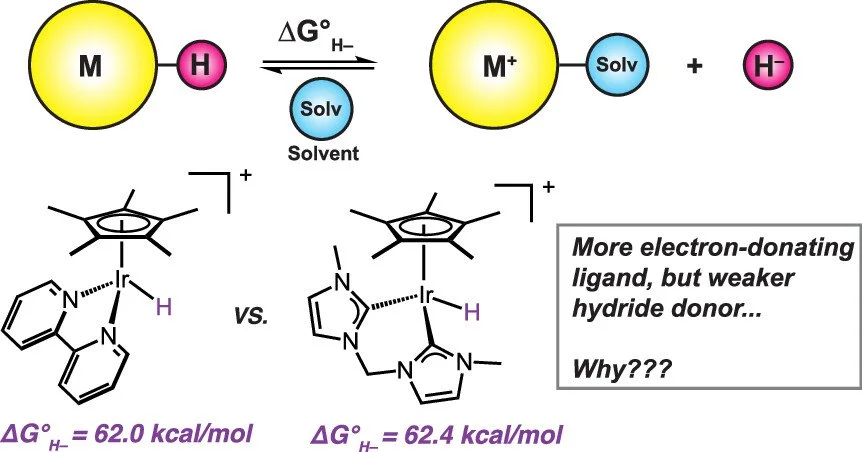 Travis, B. D.; Ertem, M. Z.; Hearne, W. A.; Gonell, S.; Miller, A. J. M. Unexpected Hydricity of a Bis-Carbene Iridium Complex Provides Insight into Electronic Structure Impacts on Hydride Donor Ability, Inorg. Chem., 2025, 64 (34), 17255–17265. https://doi.org/10.1021/acs.inorgchem.5c02249